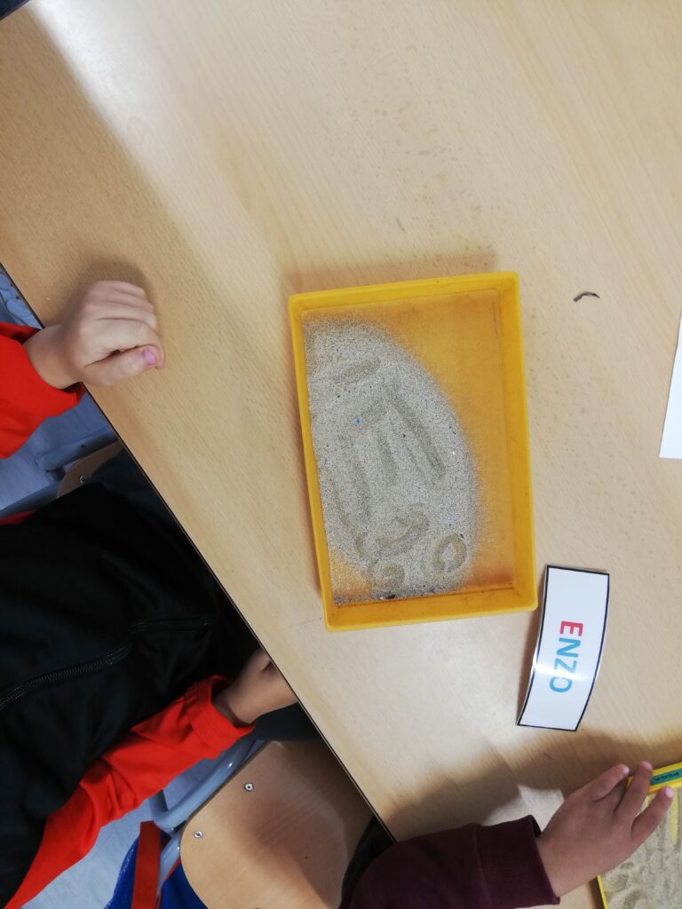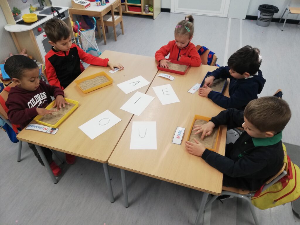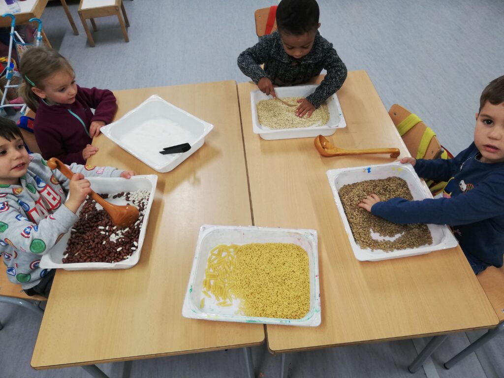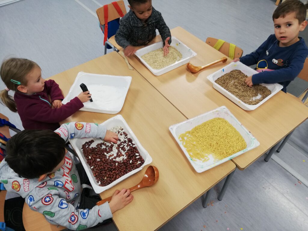 Els i les alumnes d’educació infantil P3 treballem diferents propostes com el traç, el projecte del nom i la noció de número – quantitat mitjançant elements naturals, la experimentació i la manipulació.
