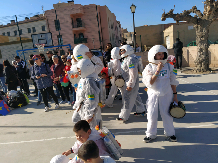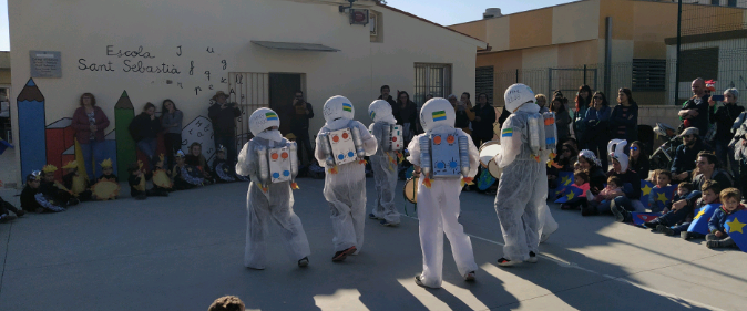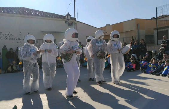 Divendres a la tarda vam fer la rua per el poble i després al pati els alumnes de CS una batukada van tocar.