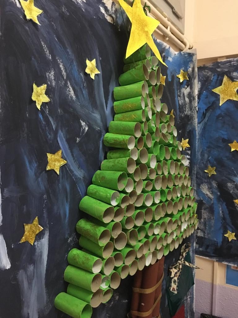 L’hivern i les festes de Nadal s’acosten i a l’escola ja comencem a sentir el fred… però tot ha canviat quan ens hem posat mans a la feina per decorar les aules, els passadissos i espais comuns i, fins i tot, el pati!! Aquest any hem intentat utilitzar material reciclat per fer-ho: les estrelles són ampolles de plàstic, l’arbre de Nadal fet pels alumnes d’infantil són rotllos de paper de vàter o cuina, i el dels alumnes de cicle inicial està fet amb oueres! Us volem ensenyar com ha quedat, esperem que us agradi!