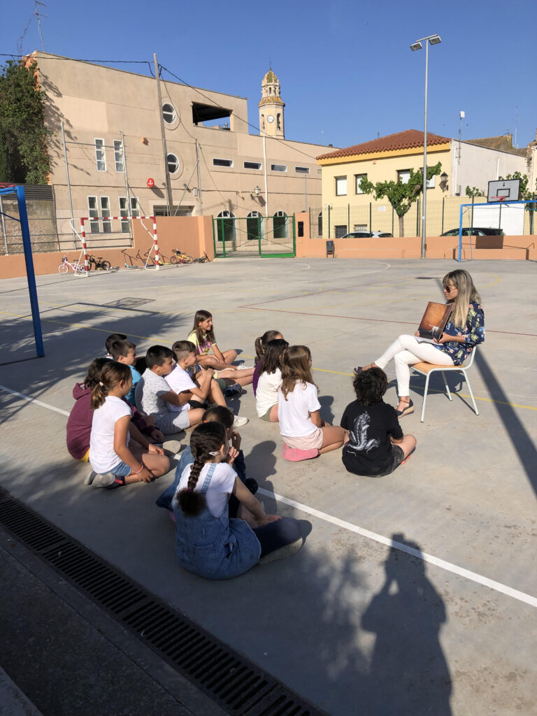 Avui els i les alumnes de cicle mitjà hem fet l’estona de lectura al pati. Amb aquests dies de tan bon temps que estem tenint, hem aprofitat per canviar l’escenari diari de la lectura.