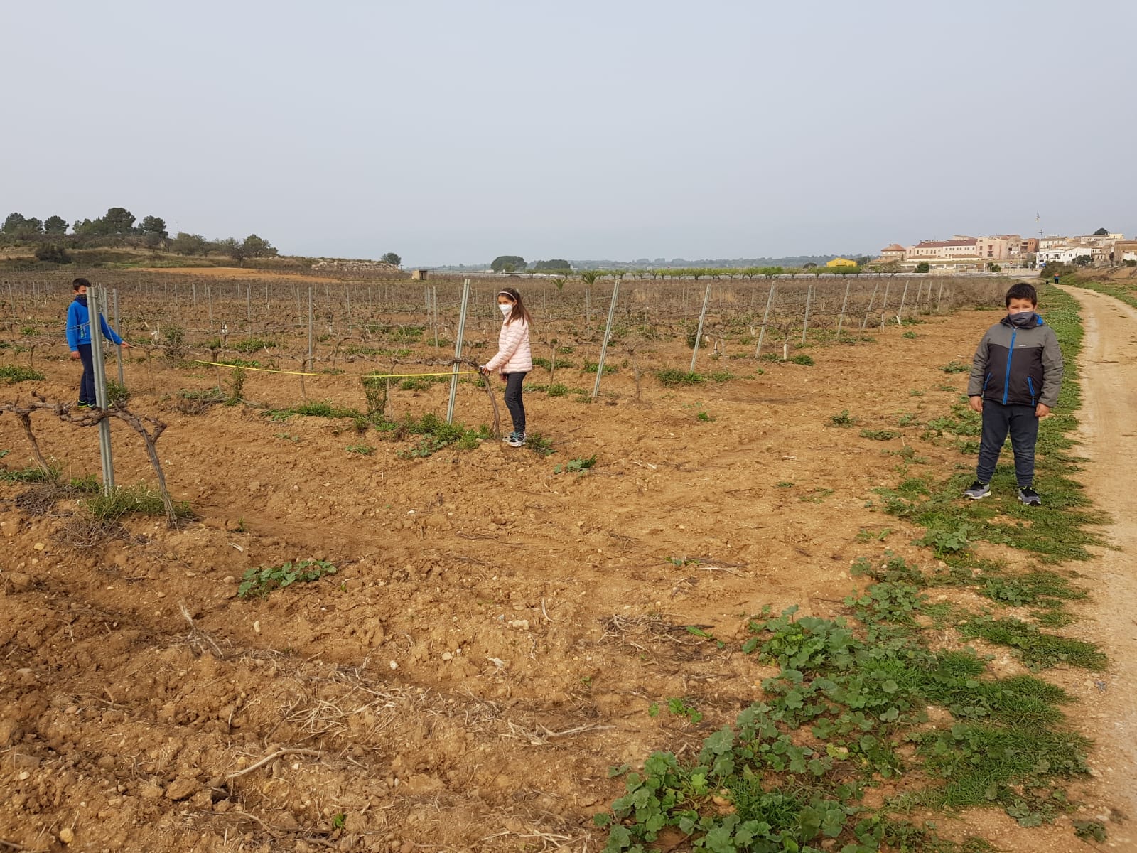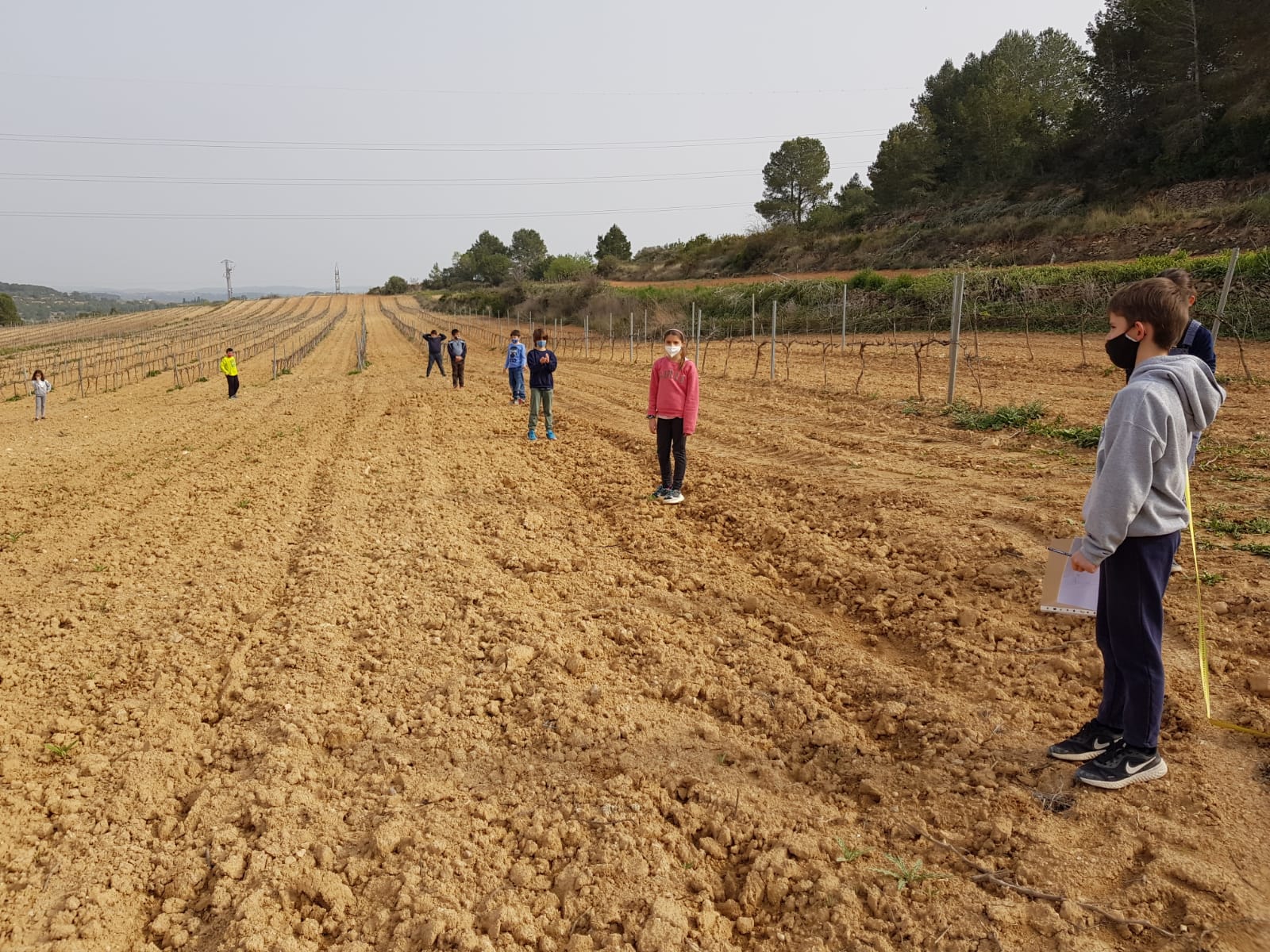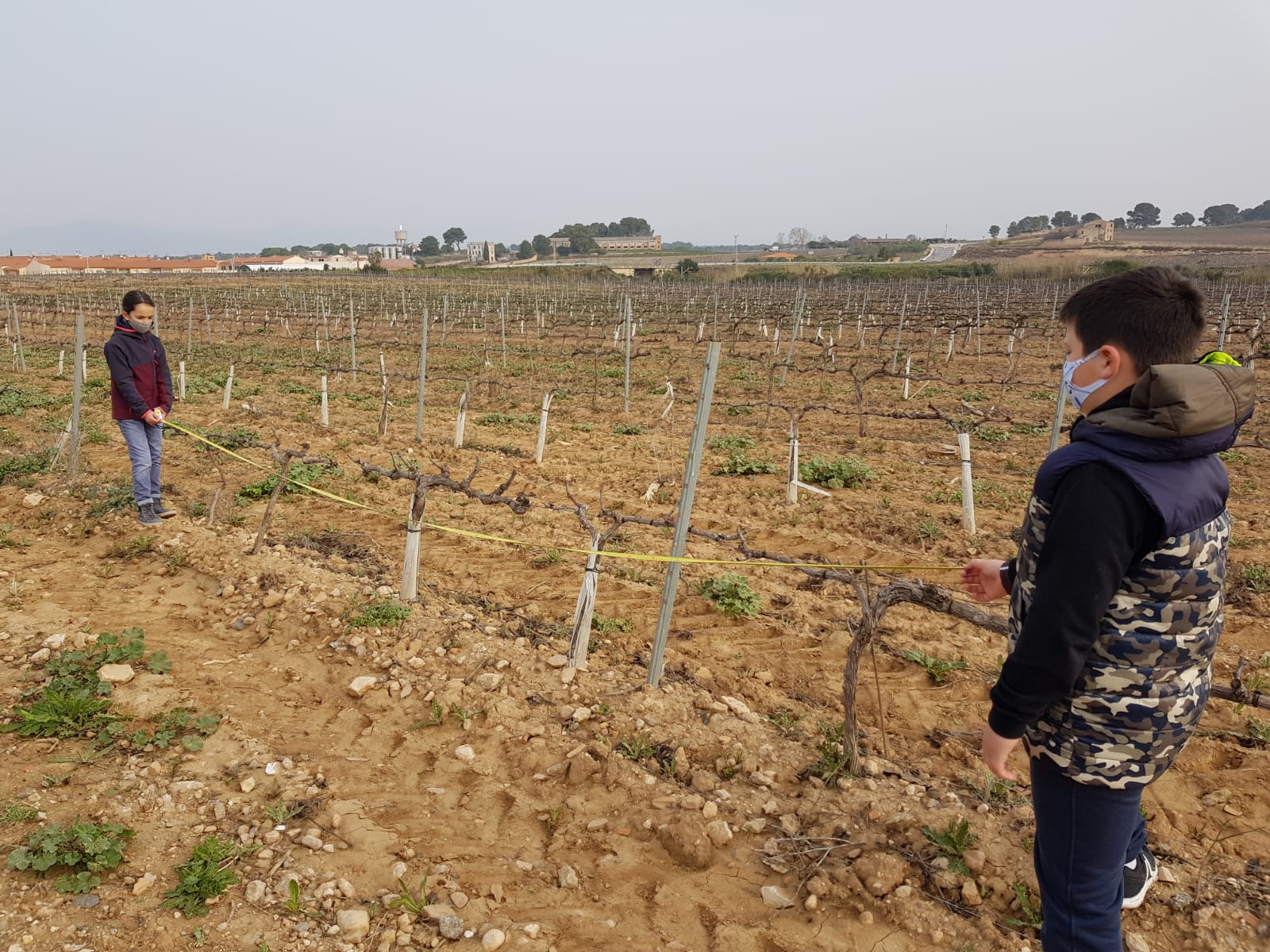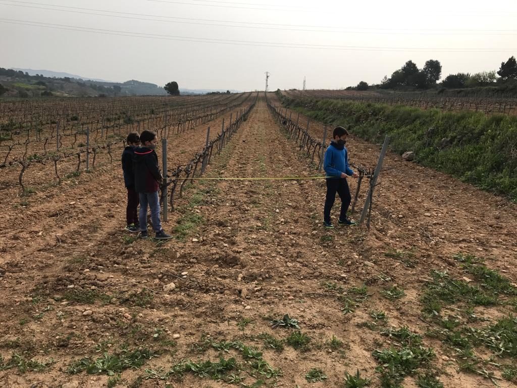 Ens vam posar mans a l’obra i vam anar a la vinya de l’Anton (avi del Bernat) i allí vam prendre una sèrie de mesures de longitud per esbrinar aquest repte. A continuació vam fer unes operacions matemàtiques i al final ja sabíem els ceps que ens farien falta!