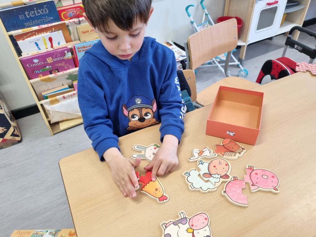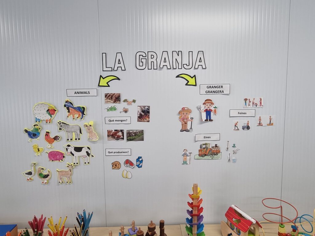 Poc a poc els i les alumnes de P3 anem completant el nostre mapa visual del projecte de la granja. Hem treballat diferents aspectes com els animals i les seves característiques, què mengen, què produeixen… També hem après l’ofici de granger/a, quines feines realitza i quines eines utilitza. Tot això ho hem treballat a partir de diferents recursos visuals i manipulatius: puzzles, encaixables, joguines, vídeos, cançons, imatges, contes, etc.
