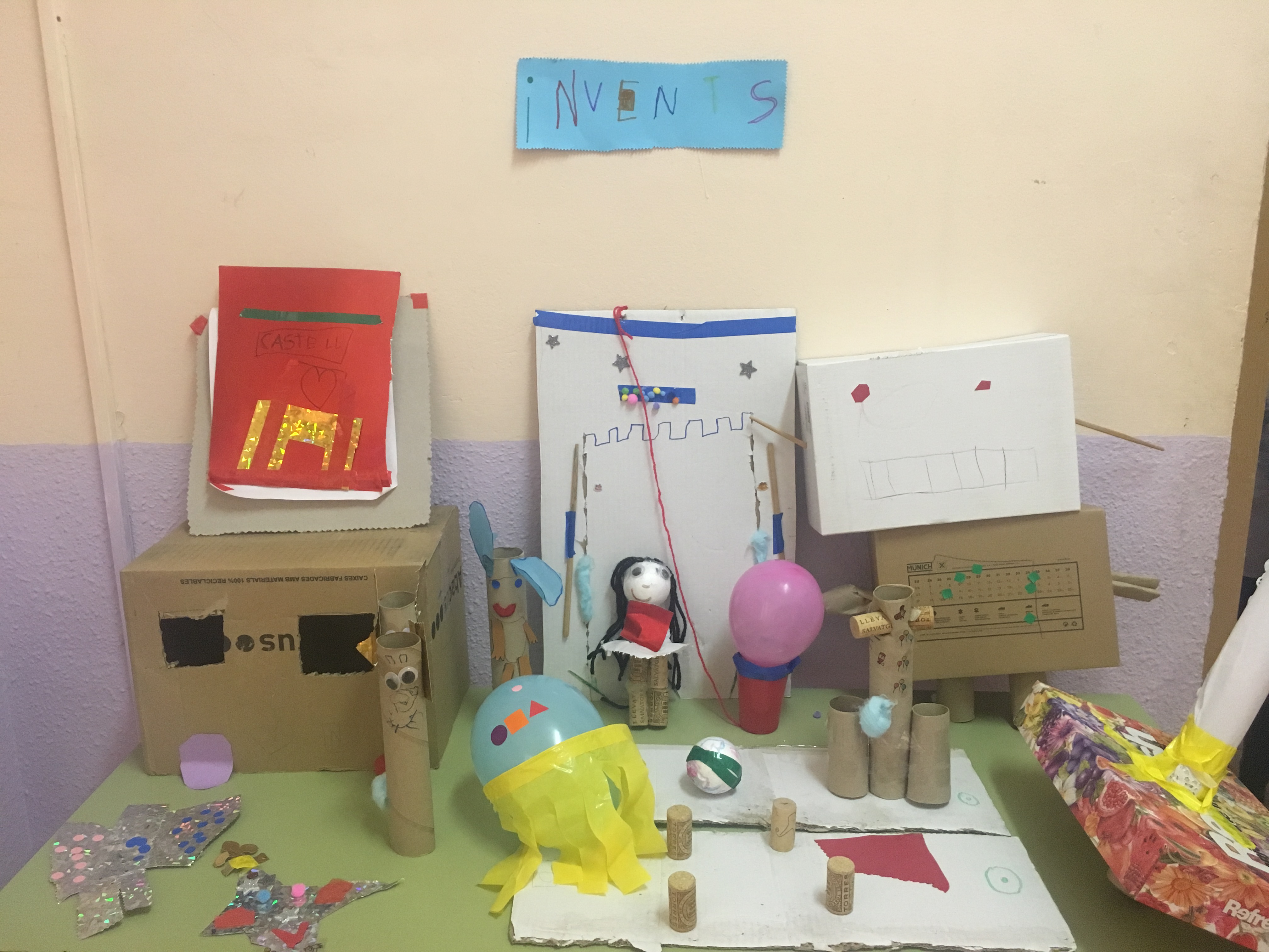 Exposició dels invents dels infants al hall de l’escola