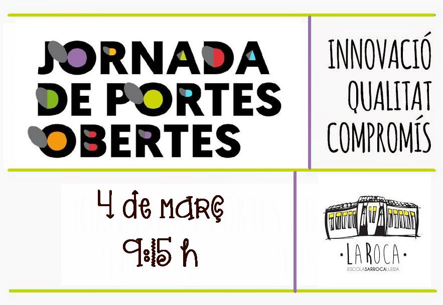 Jornada de Portes Obertes Feu un comentari / Per Escola La Roca / 12 de març de 2019 / Escola Volem compartir amb vosaltres la Jornada de Portes Obertes. Cartell: Vídeo: Informació: https://docs.google.com/presentation/d/1RBigppKxgKvrApf1xQLtlyhbUJVs1OOQHco_hLnI9CY/edit#slide=id.g439615d2aa_0_2