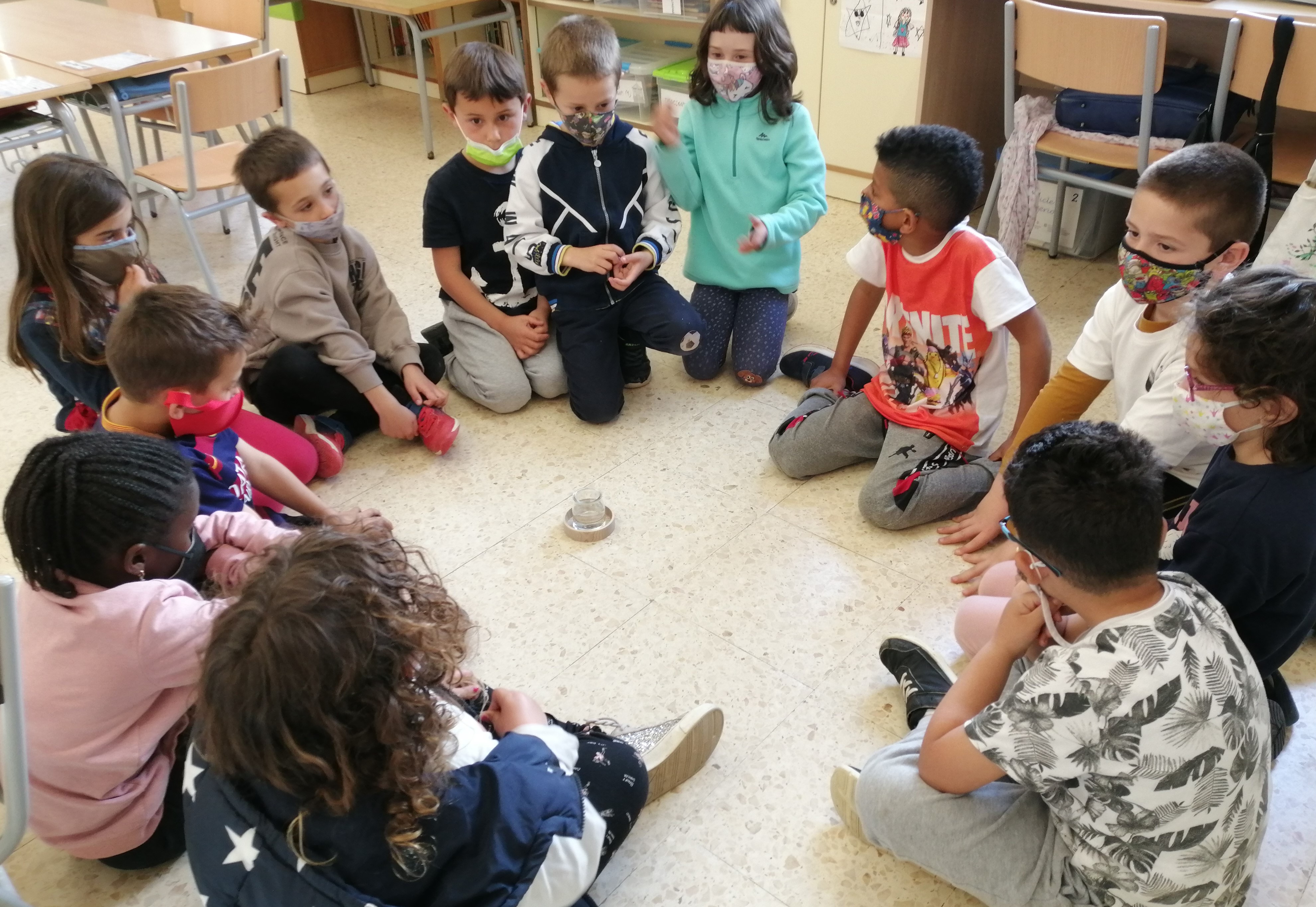 Aquest tercer trimestre l’alumnat de 1rA hem experimentat amb l’aigua. Hem repartit tres pots d’aigua, per diferents llocs de la classe amb temperatura diferent i després de fer prediccions del que passaria, hem observat que l’aigua quan s’escalfa s’evapora.