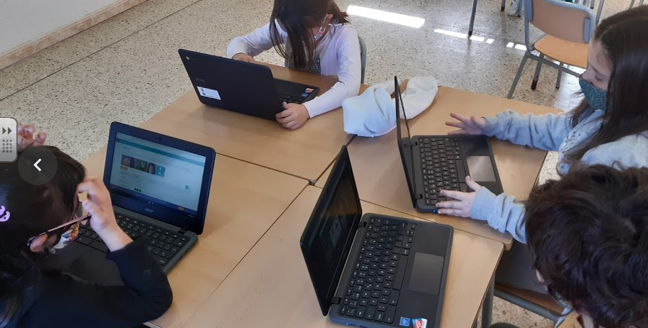 Mentre un grup treballa amb els Chrome fent activitats del programa Code.org, l’altre grup fa el taller de dramatització.
