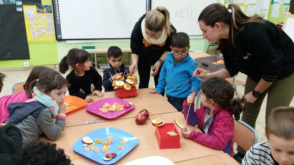 AMB LA FRUITA QUE REBEM DEL DEPARTAMENT D’AGRICULTURA, RAMADERIA I PESCA DE LA GENERALITAT I L’AJUDA DE LA CARLA I LA MIREIA, HEM FET UNA TALLER DE PINXOS DE FRUITA BONÍSSIMS!!!