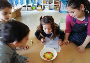 Science experiments! 1st grade admin04/03/20 The explorers did a science experiment in English. They placed the skittles or “lacasitos” in a circle on a plate and they added warm water. See what happened! Click the image to see the photo album.