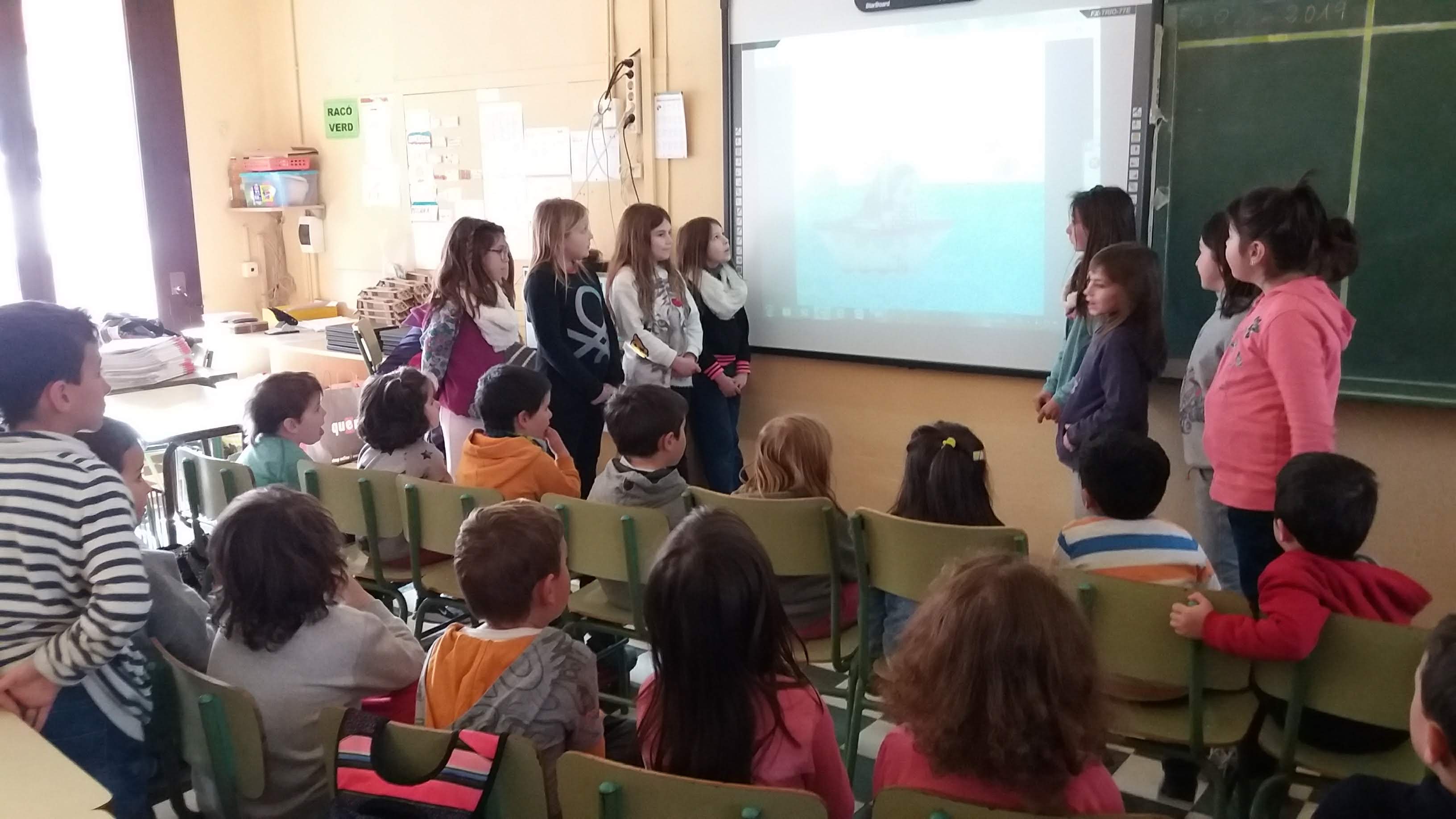 ELS CARGOLS I UN GRUP DELS ÀNECS HEM ANAT A LA CLASSE DELS NENS I NENES DE 3r A ESCOLTAR EL CONTE DE “NA MARTINA”, UN CONTE QUE ENS PARLA DE LA PAU.