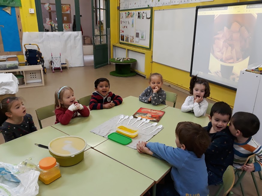 LA SETMANA PASSADA, A LA CLASSE, VAM EXPLICAR EL CONTE:  “SOPA DE CARBASSA”. TOT SEGUIT, COM QUE TENIEM UNA CARBASSA, VAM ANAR A LA CUINA PERQUÈ ENS L’OBRISSIN PER LA MEITAT I AIXÍ, PODER VEURE L’INTERIOR DE LA CARBASSA: LA VAM TOCAR, OLORAR, MIRAR..I AQUEST MATÍ, COM QUE LA LAURA ES VA EMPORTAR LA CARBASSA A CASA, PER FER-NE CREMA, L’HEM TASTAT. HEM VIST EL PROCÉS PER FER-LA A TRAVÉS DE LA PDI DE LA CLASSE. DESPRÉS, HEM ANAT A ESCALFAR-LA AL MICROONES DE L’ESCOLA I MMM..!! QUE BONA! ENS HA AGRADAT MOLT A TOTS I TOTES.