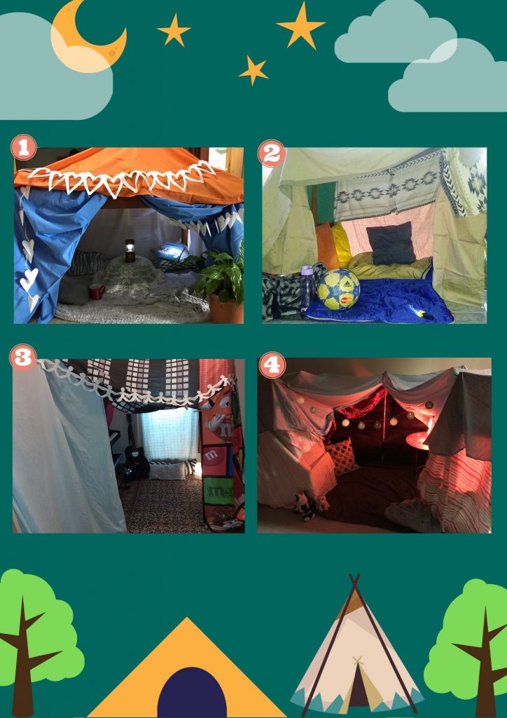 Abans, però, us proposem un joc! Nosaltres ja hem preparat les nostres cabanes per fer l’acampada aquesta setmana…