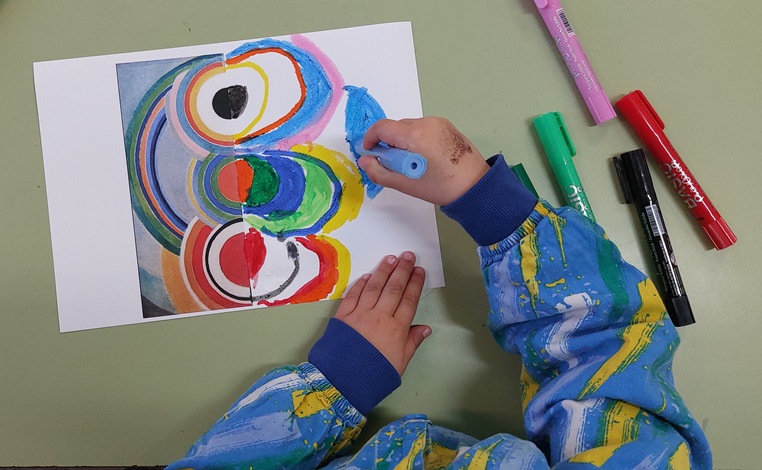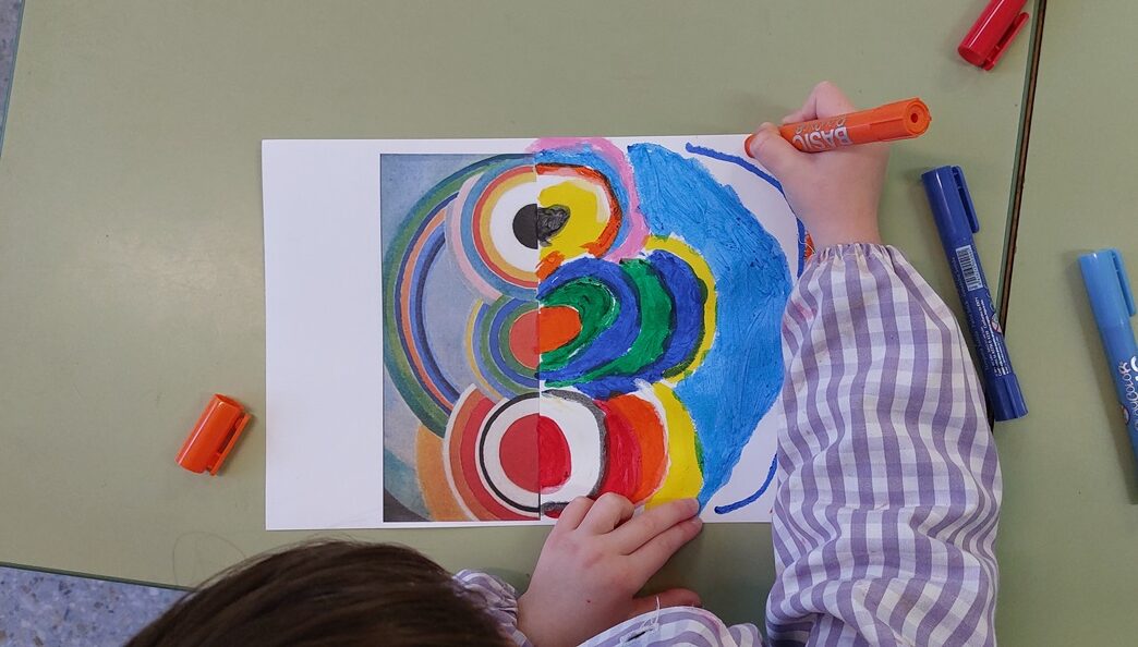 Aquest trimestre, els infants d’I5 han iniciat un treball artístic inspirant-se en l’autora Sonia Delaunay; una pintora i dissenyadora, representant de l’art abstracte. Amb les seves obres, aprofitem per a treballar les figures geomètriques, els colors i aspectes matemàtics com la simetria.