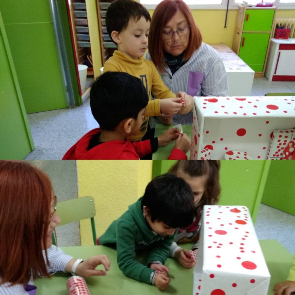 Decidim inspirar-nos en les obres d’art i realitzem uns dibuixos fent topos. També creem una mini habitació amb cartró i enganxem gomets vermells; igual que una feta per la pròpia artista. Aquí us deixem algunes imatges del procés!