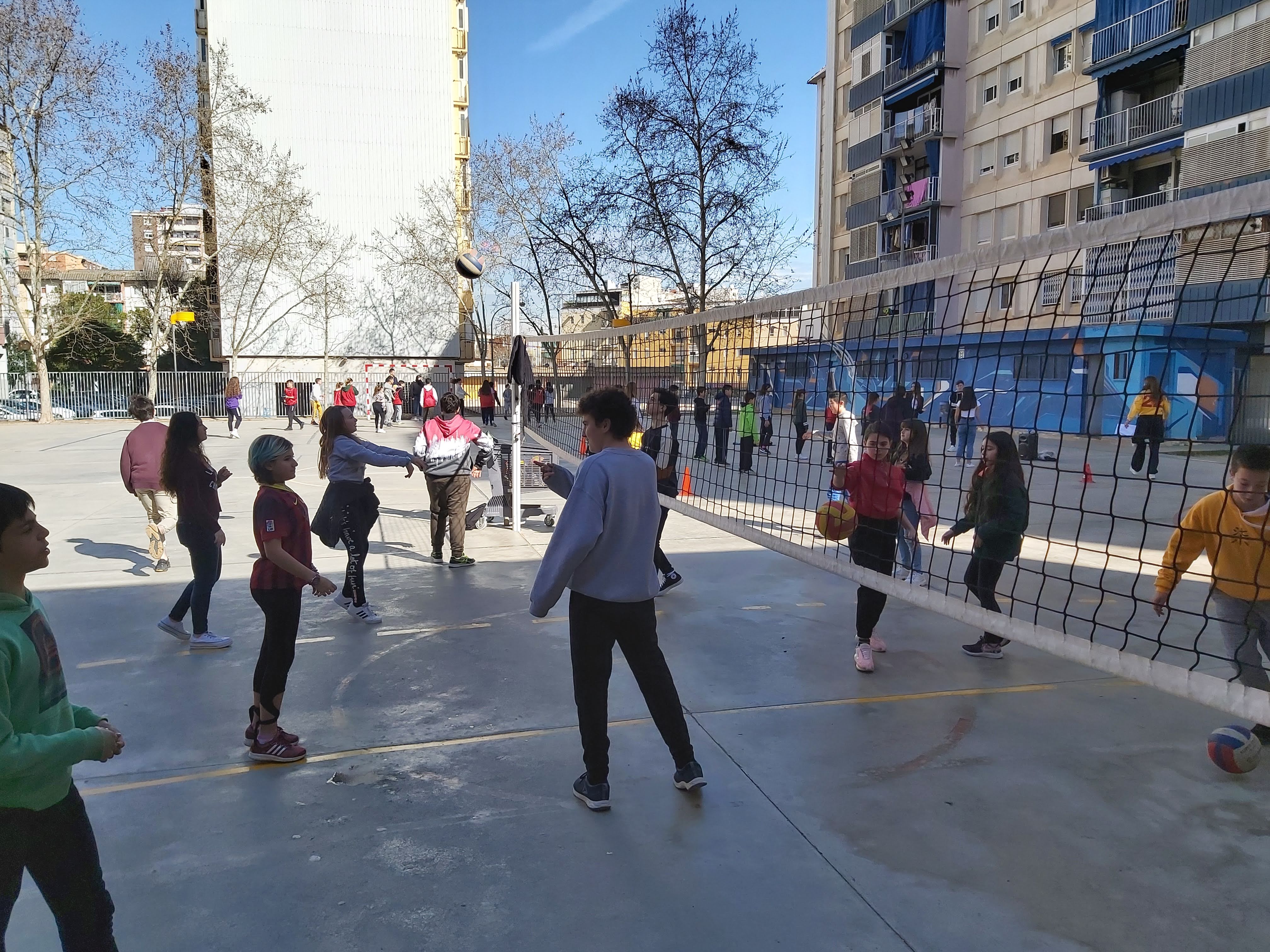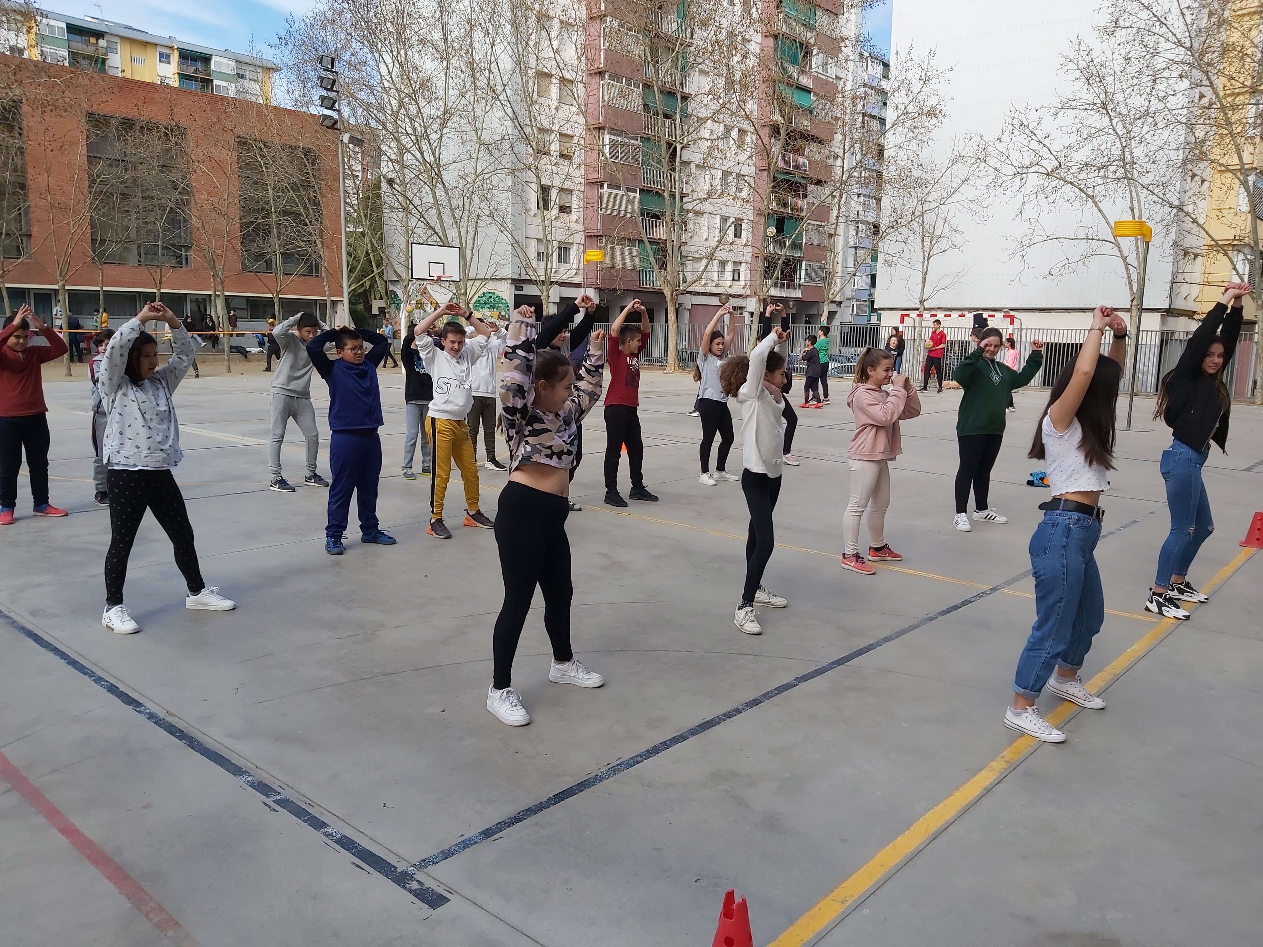 Posteriorment, els alumnes de 6è amb els de 1r d’ESO barrejats, i dinamitzats per alumnes de 4t d’ESO, van poder realitzar les següents activitats esportives: dance, korfbal, voleibol, gimnàstica rítmica i tennis taula amb esports de raqueta. Tot això organitzar pel mestre