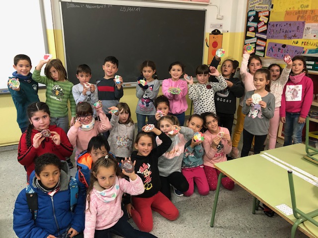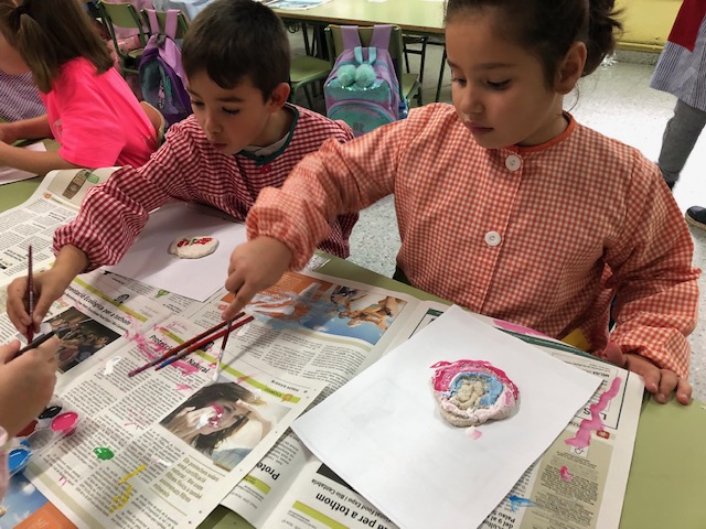Per això, cadascú va fer un fòssil amb una forma diferent (amonites, òssos, petjades…) que després de deixar-lo assecar, el vam pintar i decorar.