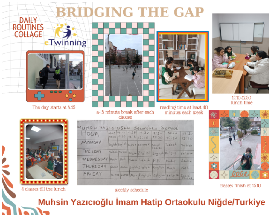In this eTwinning project, students and teachers from Lithuania, Romania, Poland, Greece, Italy, Catalonia, and Turkey came together to explore and share how schools operate in their respective countries. Through a variety of engaging and collaborative activities, we have shared and learnt about different educational systems, daily routines, and school cultures.