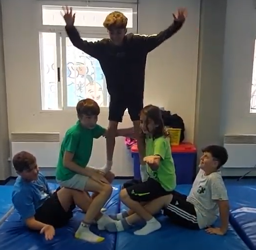 Els alumnes de cicle superior, a l’hora d’educació física, hem creat unes coreografies fent figures d’acrosport.