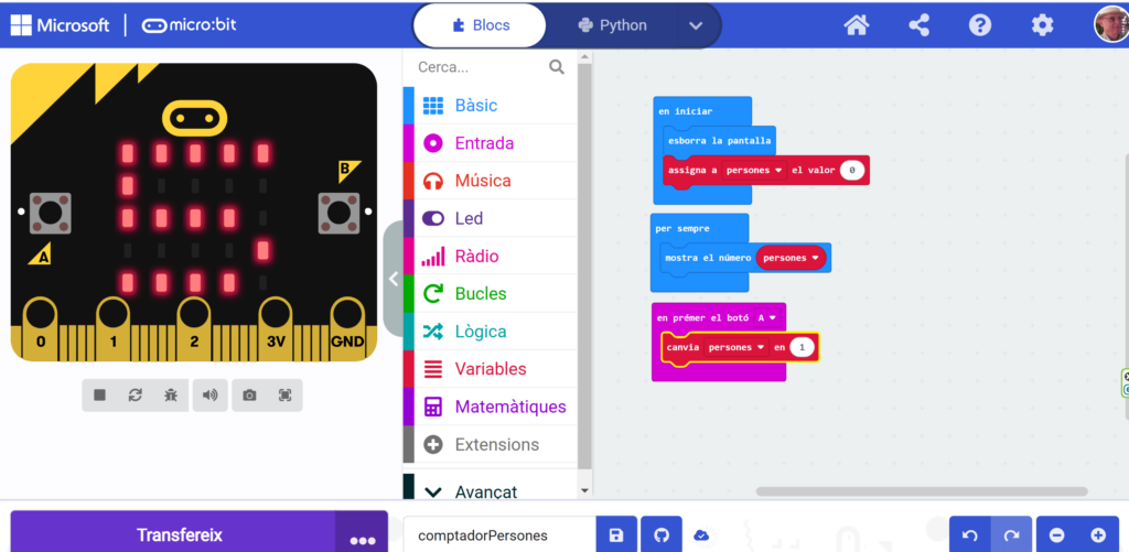 Trataremos de programar una mico:bit que nos permita contar las personas que entran o salen de una aula, o de la escuela.