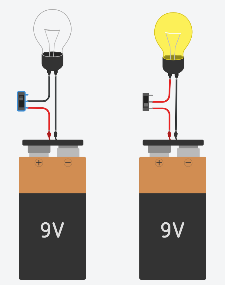 En el cas de la llanterna, l’interruptor comunica a la llum el seu estat via un cable de coure.