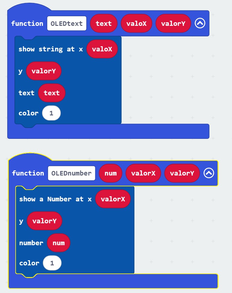 Para mostrar las temperaturas y hacer más amigable la secuencia “per sempre” se han utilizado funciones, una función para mostrar un texto o para mostrar un número (variable) a partir de unas coordenadas x , y.