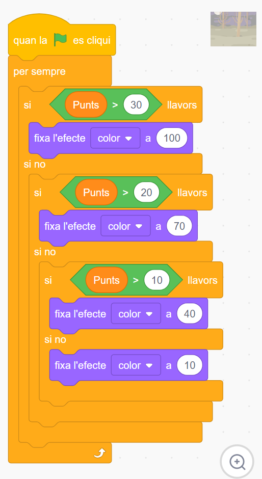 También podemos cambiar efectos del escenario (back drop), fijaremos un color diferente par cada nivel: