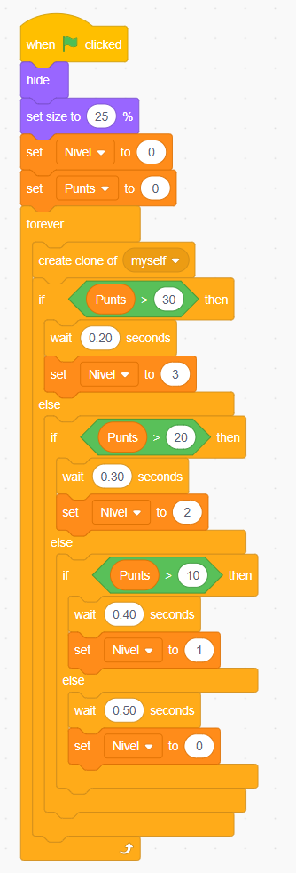 Se pueden ir añadiendo mejoras, por ejemplo, incrementar la dificultat del juego: Aumentando la velocidad de creación de clones cada vez que se supere un nivel.