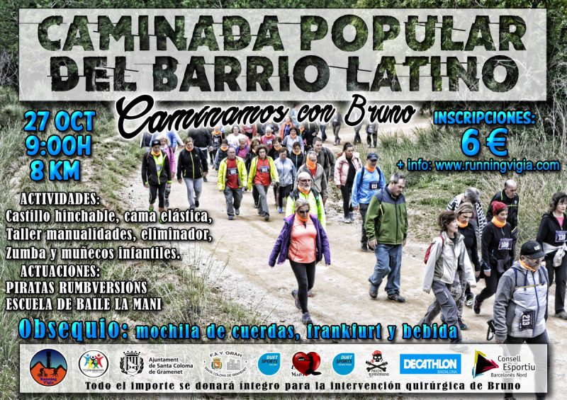 La “Caminada popular del Barrio Latino: Caminamos por Bruno” se celebra el proper 27 d’octubre a la Plaça del Barri Llatí de Santa Coloma de Gramenet (Carrer Perú, 45). La sortida de la Caminada serà a les 9:00 h. a la Plaça de Barri Llatí, fins a arribar a la Serralada Marina, passant pels llocs […]