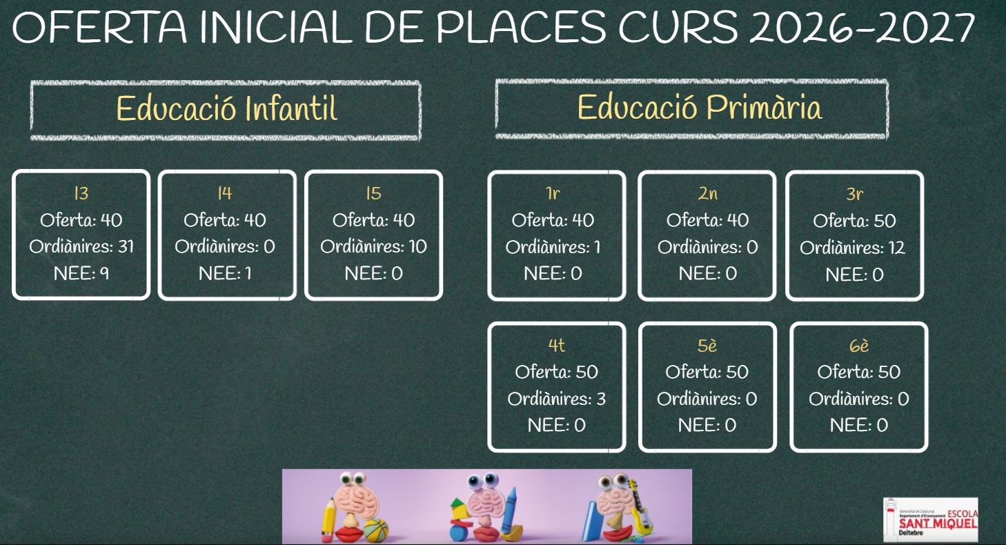 05/03/24L’oferta inicial de la Preinscripció per a l’Educació Infantil i Primària al nostre centre és la següent:
