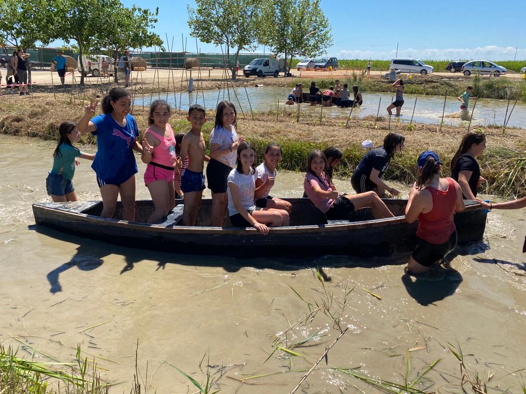 Després de dos anys, els alumnes de 5è de primària han tornat a ser els protagonistes de la plantada escolar a la finca de “Bombita”. Un dels principals objectius és ensenyar als xiquets com es plantava l’arròs antigament.