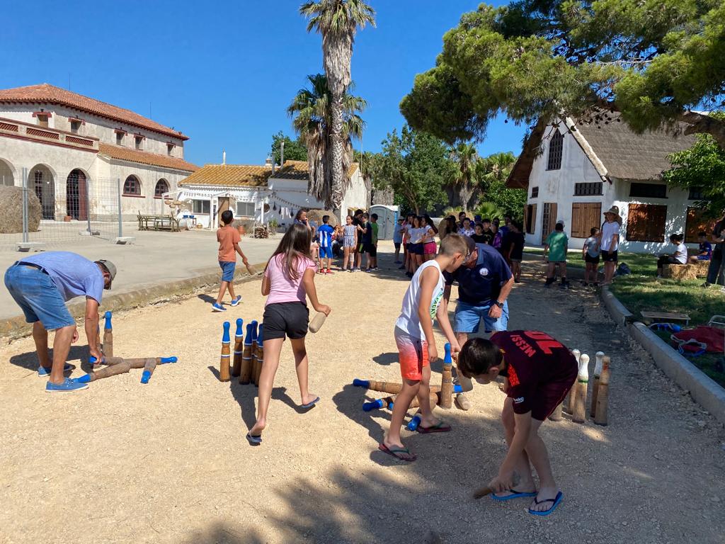La jornada ha començat amb una explicació sobre la història de l’arròs i després de l’esmorzar s’han passejat amb tractor per la finca. A més a més, han pogut jugar a les bitlles i perxar per la llacuna.