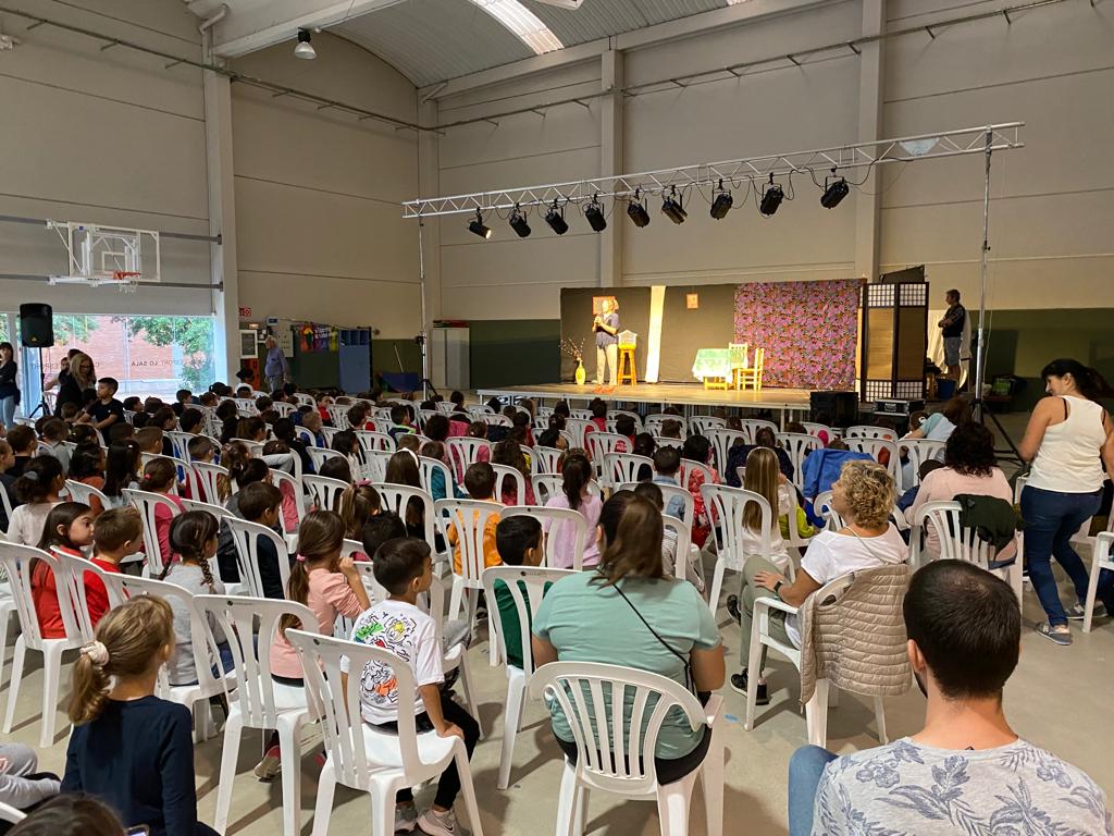 Avui els xiquets i xiquetes de l’Escola Sant miquel, hem gaudit de la representació de l’obra “La xiqueta dels pardals” representada per la companyia Delta teatre. Ens ha agradat molt perquè hem vist familiars actuant, ha sortit un moixonet dins d’una gàbia, picaven amb cassoles i feien soroll…. Malgrat la pluja ens ho hem passat genial!!