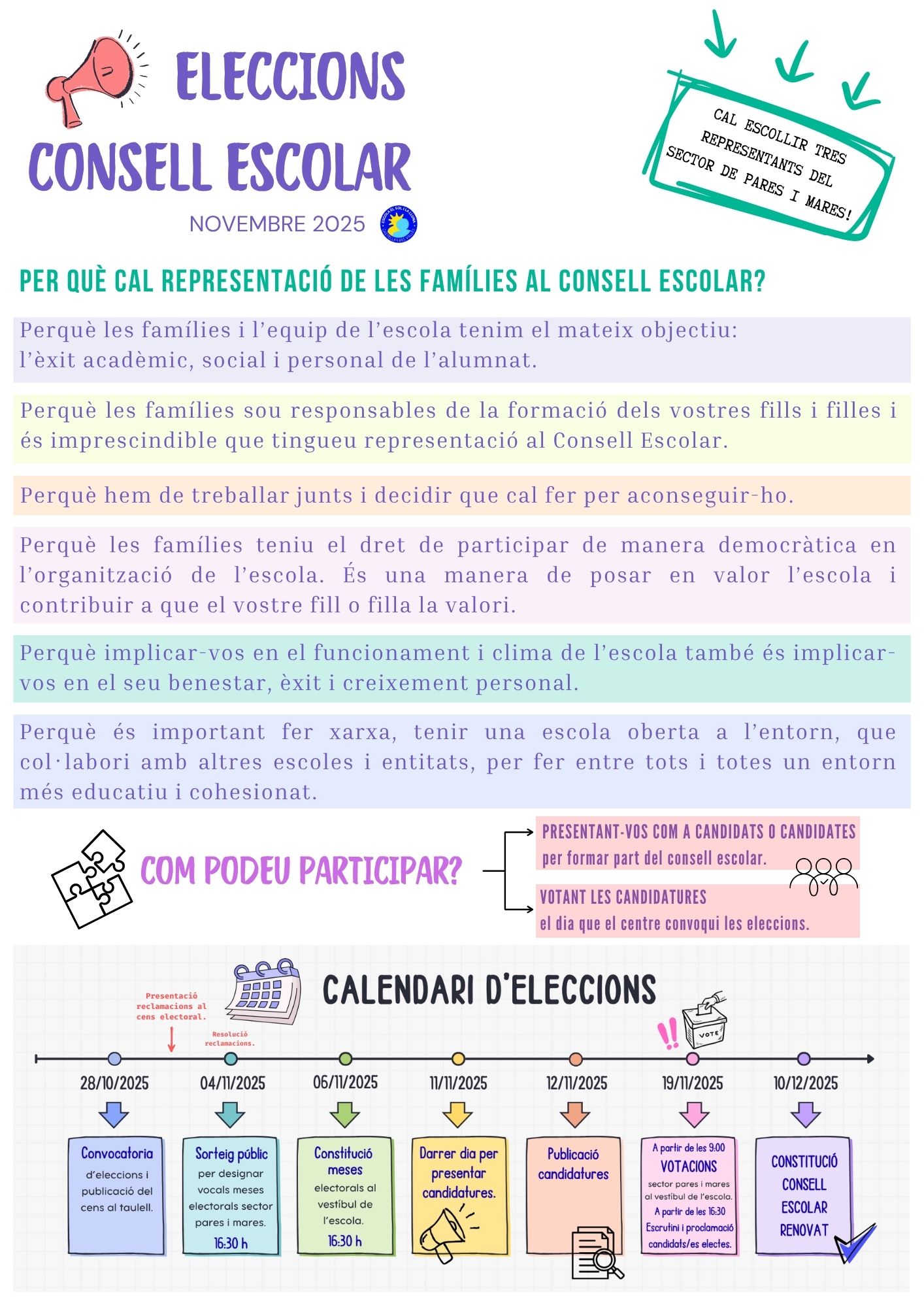 Avui hem publicat la convocatòria d’eleccions al Consell Escolar, per renovar part del sector de mares i pares, també el de mestres.