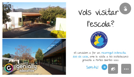 Visita virtual de l’escola… Feu un comentari / Per admin / 4 de maig de 2020 / General Portada Ens vols conèixer, et convidem a fer aquest passeig virtual …