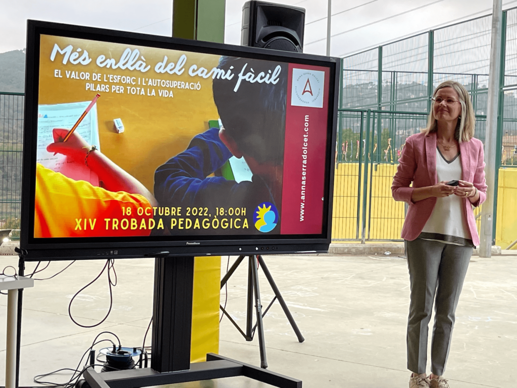 A diferència d’altres anys, aquest curs la Jornada Pedagògica amb famílies la celebrem tot just quan encara no portem ni dos mesos de curs. El lema de la Jornada, “Més enllà del camí fàcil”, deixa clar que la cultura de l’esforç i l’autosuperació són valors i pilars fonamentals per tenir èxit a la vida. L’escola