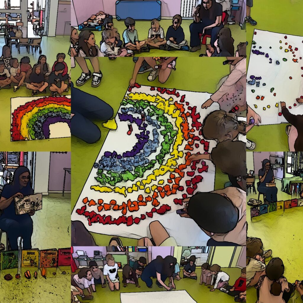Prèviament, a l’aula s’han treballat diversos àlbums il·lustrats, observant-ne les imatges, els colors i els elements visuals. A partir d’aquest treball, els infants han reflexionat sobre com podem descriure els objectes utilitzant adjectius relacionats amb els colors, ampliant així el seu vocabulari i la seva capacitat d’expressió.