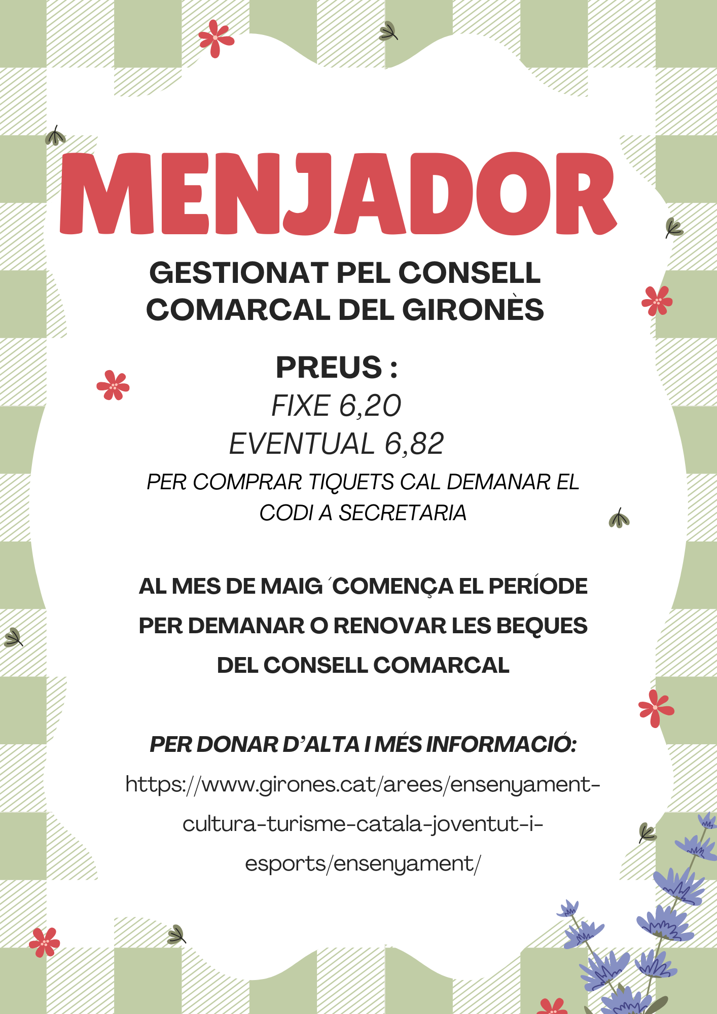 Menú basal del mes de febrer.