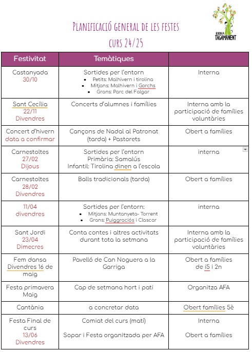 Aquí podeu consultar algunes de les festes que celebrem a l’escola i quines són obertes a famílies