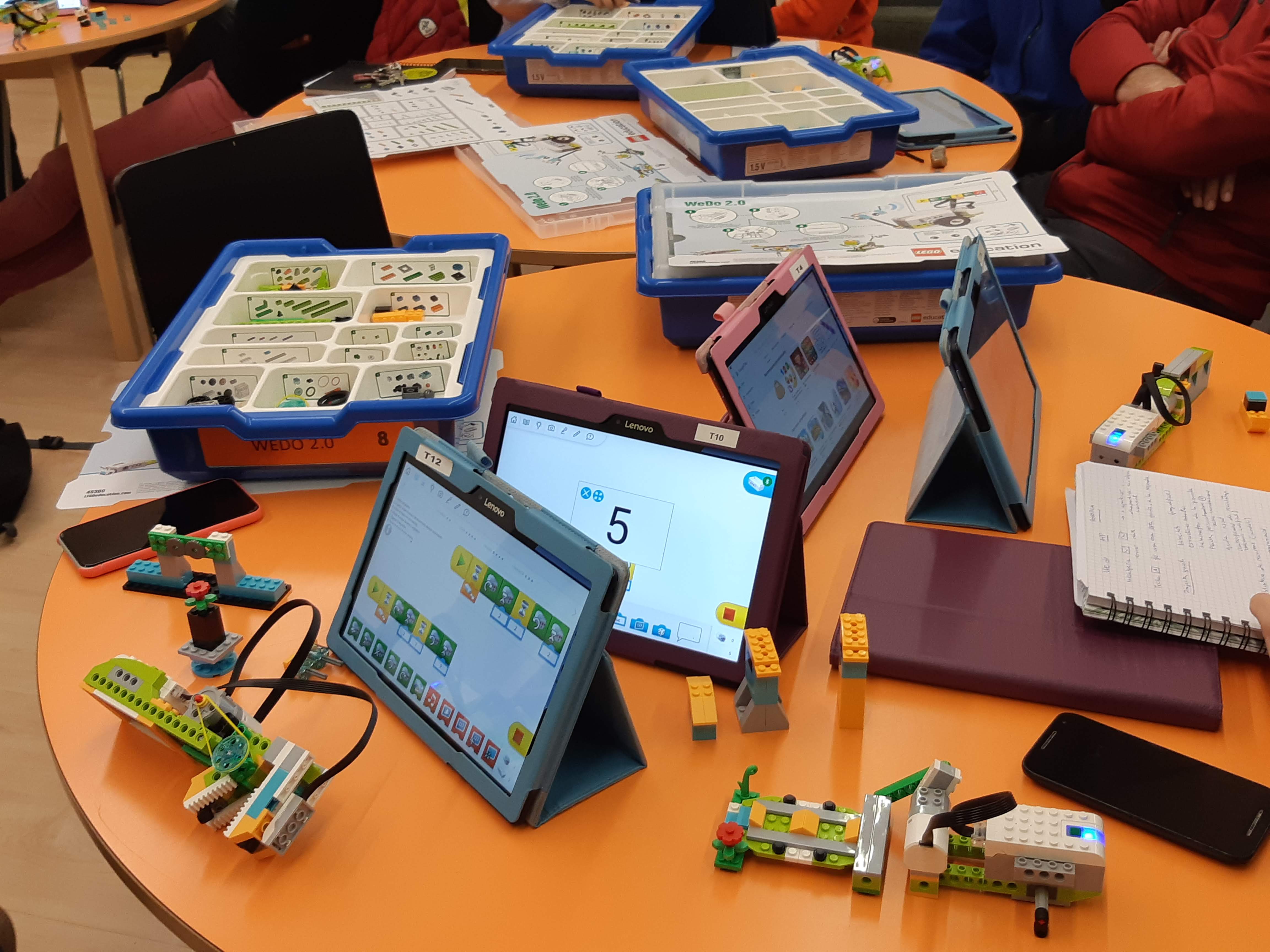 Aquest curs el claustre de l’escola segueix fent la formació de robòtica amb la Mireia Alba, formadora, mestra i especialista en Robòtica de l’escola Albert Vives. Seguim aprenent com fer dels robots una eina d’aprenentatge i diversió pels nostres alumnes, descobrint dia rere dia nous usos i formes de treballar-hi.