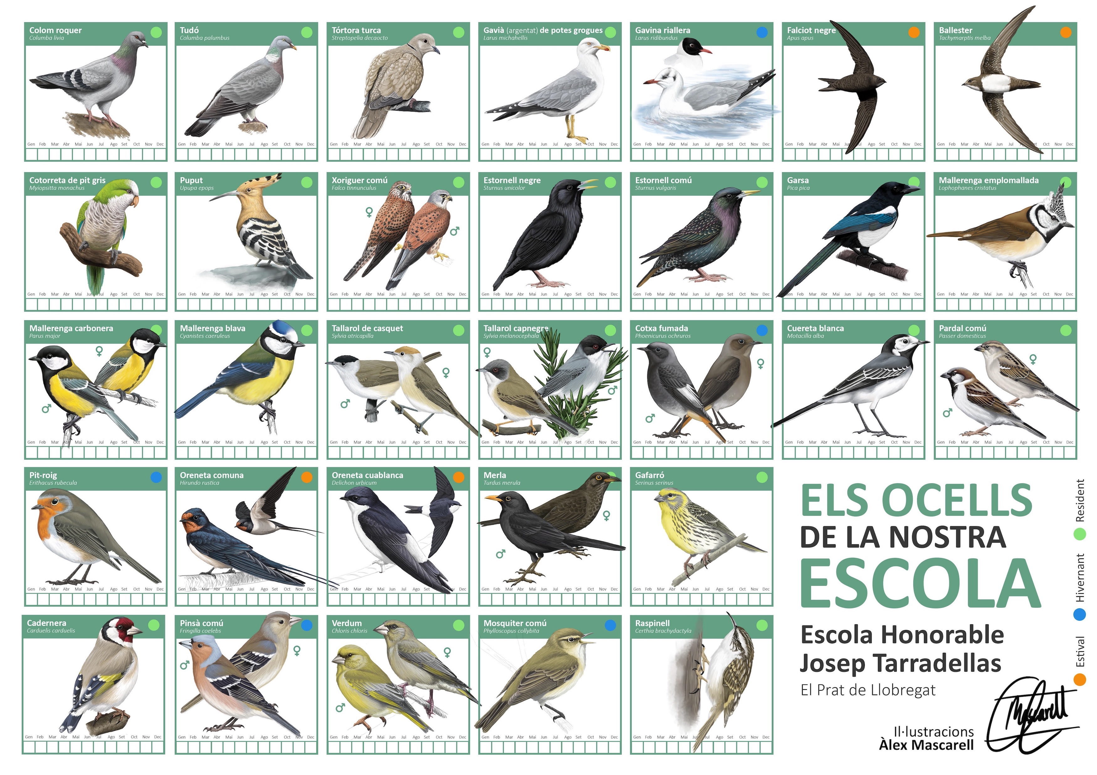 Enguany, l’Àlex Mascarell, dibuixant naturalista, s’ha ofert de forma altruista a fer il·lustracions, en format làmina-pòster, amb els dibuixos dels ocells que els nostres alumnes han vist en els espais naturals de l’entorn proper.