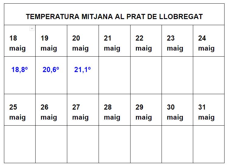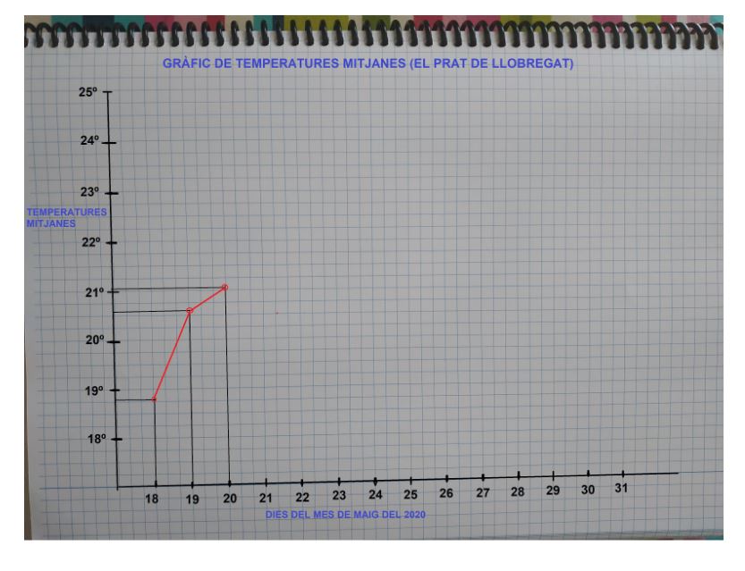 Les temperatures dels dies de la setmana del 18 al 22 de maig els pots consultar a la pàgina web, les dades de la setmana del 23 al 29 pots anar consultant cada dia fins que tinguis tota les temperatures i el gràfic acabat.
