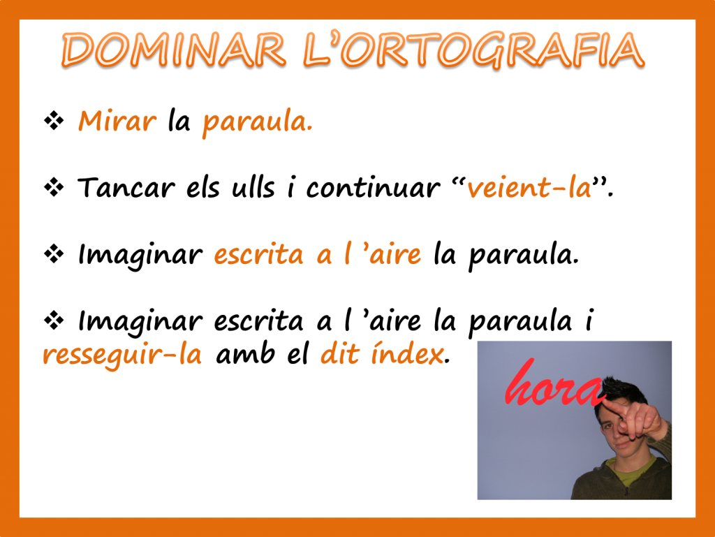 Les persones amb bona ortografia VEUEN al seu cap les paraules que volen escriure. El que fan és copiar les paraules que VEUEN a la seva ment!