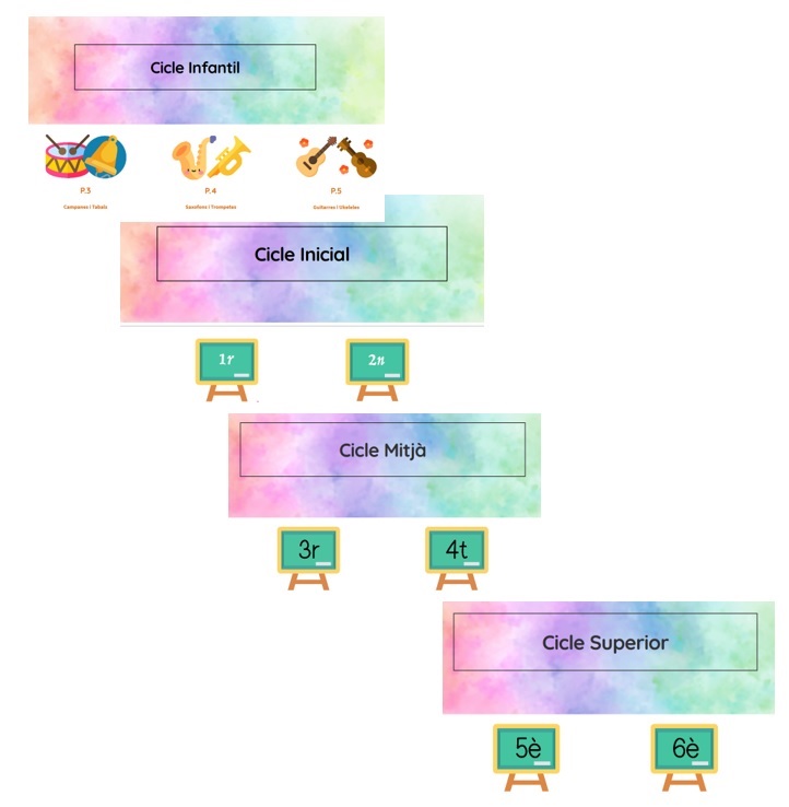 La trobareu distribuïda per cicles, cursos i setmanes,