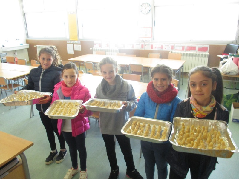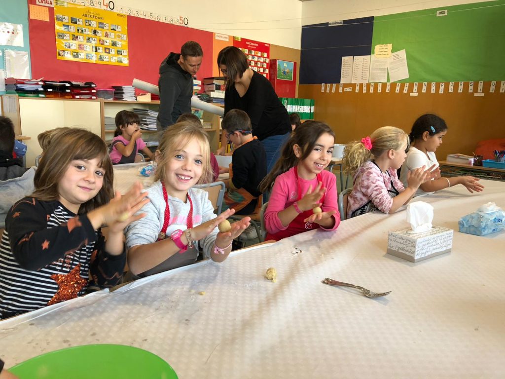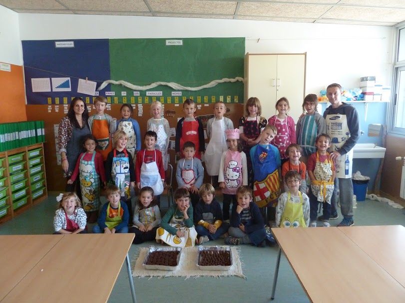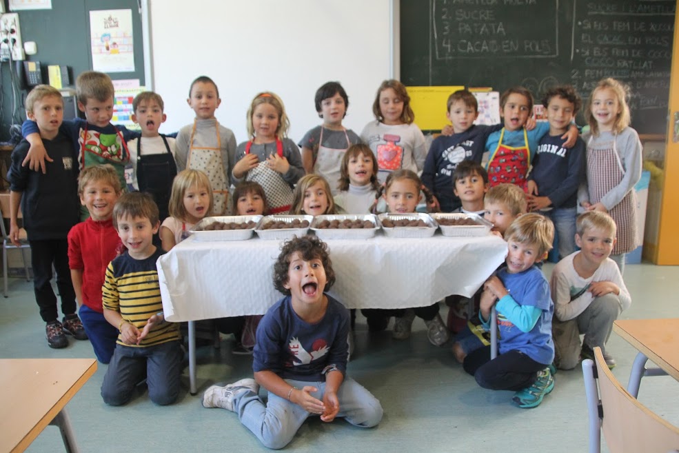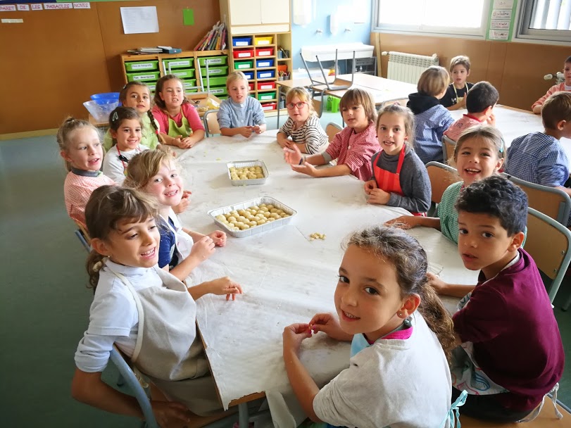 Demà celebrarem la Castanyada i avui hem fet panellets de xocolata, d’ametlla i de coco.
