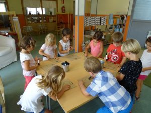 I els que no són tan petits, els nens i nenes de les classes de les granotes, formigues, mussols i puputs durant la tarda del primer dia van poder gaudir d’uns tallers per tot l’edifici, diferents propostes lúdiques per passar una bona estona i retrobar-nos amb els amics i amigues.