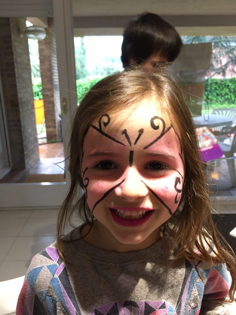 La mare em va pintar la cara de papallona amb unes pintures noves. També vaig jugar amb les nines i vam fer una perruqueria o em vaig columpiant a l’hamaca.