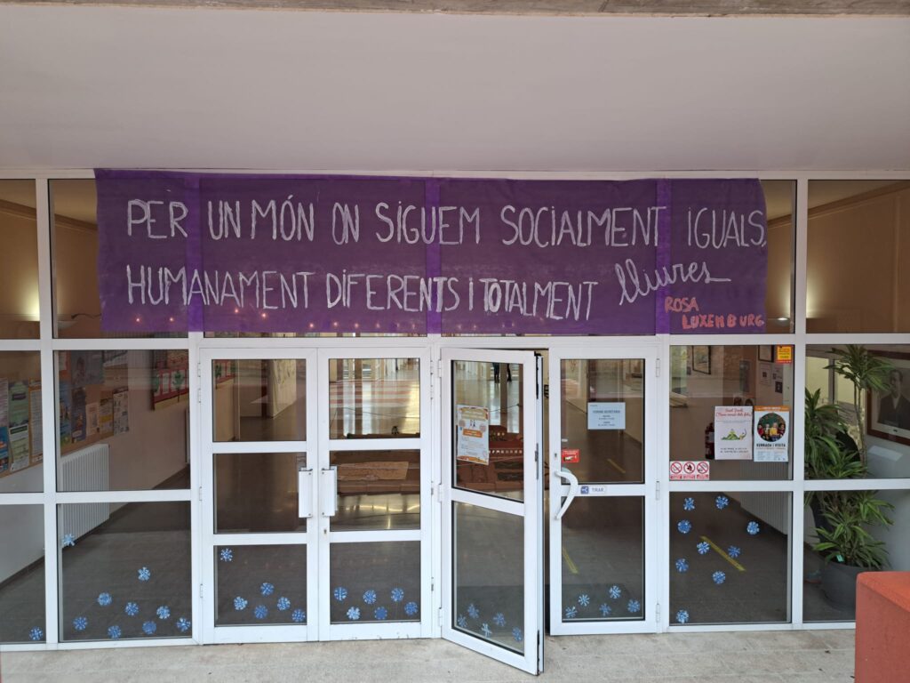A l’escola fem que cada dia sigui 8 de març, incorporant la perspectiva de gènere i una mirada inclusiva a totes les àrees i en qualsevol moment educatiu. Tot i això, durant aquestes setmanes hem estat treballant més insistentment aquesta data. Des d’educació infantil, fins a cicle superior es poden observar treballs que l’alumnat ha fet. A més a més, enguany s’ha penjat una pancarta a tots els centres escolars de Palafrugell, on s’hi pot llegir la mateixa frase: “Per un món on siguem socialment iguals, humanament diferents i totalment lliures“. Tanmateix, l’alumnat de 5è col·laborat en el manifest que s’ha dut a terme a la Bòbila.