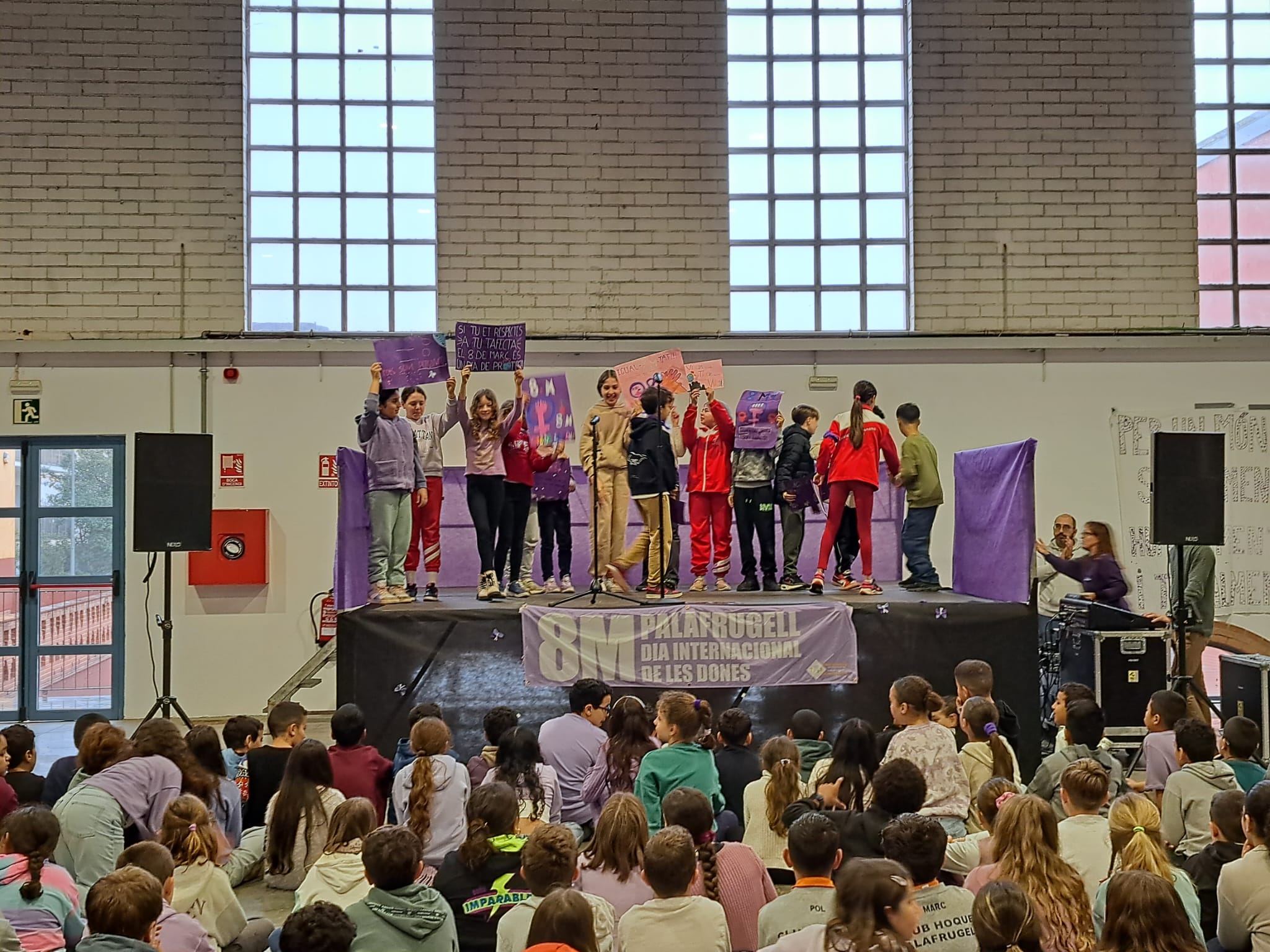 A l’escola fem que cada dia sigui 8 de març, incorporant la perspectiva de gènere i una mirada inclusiva a totes les àrees i en qualsevol moment educatiu. Tot i això, durant aquestes setmanes hem estat treballant més insistentment aquesta data. Des d’educació infantil, fins a cicle superior es poden observar treballs que l’alumnat ha fet. A més a més, enguany s’ha penjat una pancarta a tots els centres escolars de Palafrugell, on s’hi pot llegir la mateixa frase: “Per un món on siguem socialment iguals, humanament diferents i totalment lliures“. Tanmateix, l’alumnat de 5è col·laborat en el manifest que s’ha dut a terme a la Bòbila.