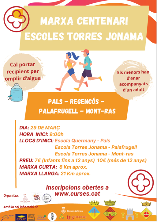 Per donar el tret de sortida de les activitats per commemorar el Centenari de la nostra escola, des de l’AFA de les escoles de Mont-ras, Pals i Palafrugell s’ha organitzat una marxa popular per el proper dissabte dia 29 de març de 2025 a les 9:00h.