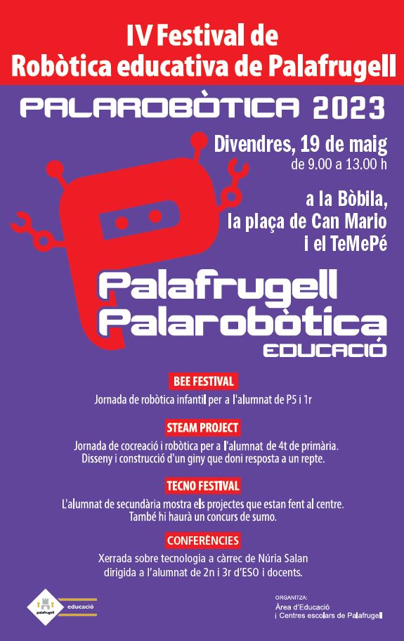 Des de tots els centres educatius de Palafrugell amb la col·laboració de l’Ajuntament, demà (19/05) s’organitza la trobada anual de robòtica educativa i STEAM: PALAROBÒTICA.