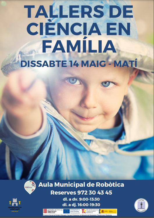 TALLER DE CIÈNCIA EN FAMÍLIA – Cal reserva prèvia i que durant el taller hi hagi, com a mínim, la presència d’una persona adulta referent amb l’alumne/a. Per informació i/o reserves, cal trucar al: 972 30 43 45.